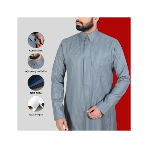 ثوب سعودي شتوي مقلم 2 -تيتانيوم سلفر