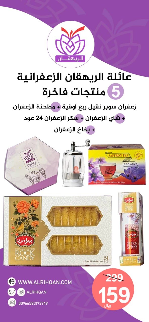 - متجر إلكتروني متخصص في أفضل أنواع الزعفران مثل: زعفران “سوبر نقيل” و”زعفران أبو شيبة – أبو شال”، إلى جانب تشكيلة واسعة من الإكسسوارات المساندة لاستخدام الزعفران.